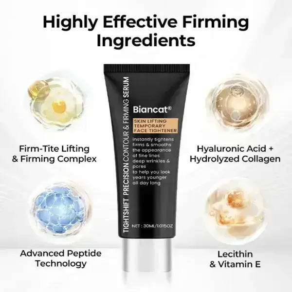 Reveal brighter, firmer, and younger-looking eyes with Biancat® TightShift Precision Contour & Firming Serum. This advanced formula combines multiple clinically active skincare ingredients, including Firm-Tite Lifting Complex, Advanced Peptide Technology, sodium silicate, hyaluronic acid, hydrolyzed collagen, lecithin, and vitamin E. Specifically designed to target under-eye bags, dark circles, and skin laxity, it works to tighten, hydrate, and revitalize the delicate eye area for both immediate and long-lasting results.